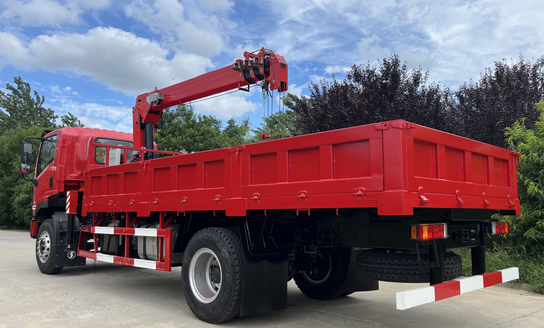 Straight boom crane, Crane model: SQS100, rated lifting capacity 4Ton, 4-section boom, boom length 9.92 meters, lifting height 12.2 meters, 360-degree rotation, hexagonal boom ensure boom system working stable, and working efficient.